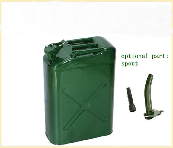 Vertical-Type Jerry Can 1.Material: Cold rolled plate 2.Thickness: 0.6/0.8mm 3.Ensures the long life away from corrosion. 4.Surface Treatment: Powder coating Usage: These portable metal Jerry Can are special designed for suburd camp,travelling motorcade,testing vehicles oil consumption and automobile rescue and so on. Advantages: 1.Safe for Transfer,Store,or Dispense Oil Based Liquid only. 2.Tough Steel Construction/Galvanized Steel 3.Additional Extension Sports Neck Design 4.Sealed Cap 5.Fully Painted-Coated 6.Corrosion Resistant