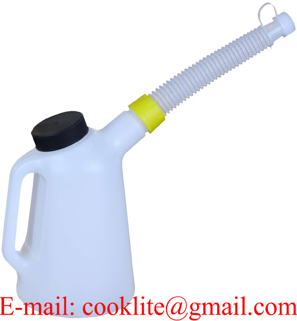1 Litre PE Plastic Flexi-spout Oil Fuel Measuring Jug Art No.:1 Liter PE Plastic Oil Measuring Jug Material:PE Capacity:1 Liter / 1 Quart Cap:Semi-open Cap Spout:Removable Flexible Spout Without Lid Measuring Reading:Quart and Litre --------------------------- 1 Litre PE Plastic Flexi-spout Oil Fuel Measuring Jug With Lid Art No.:1 Liter PE Plastic Oil Jug Material:PE Capacity:1 Liter / 1 Quart Cap:Thread Cap Spout:Removable Flexible Spout With Lid Measuring Reading:Quart and Litre