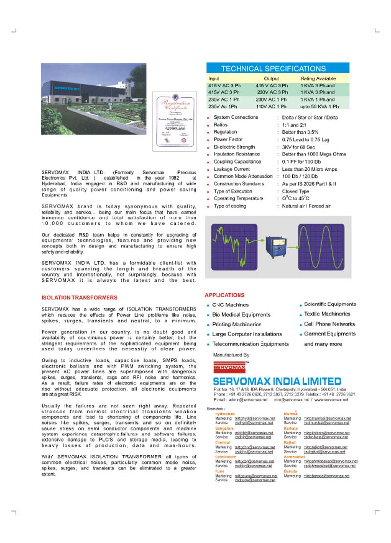 SERVOMAX ISOLATION TRANSFORMERS TO CONTROL SURGE